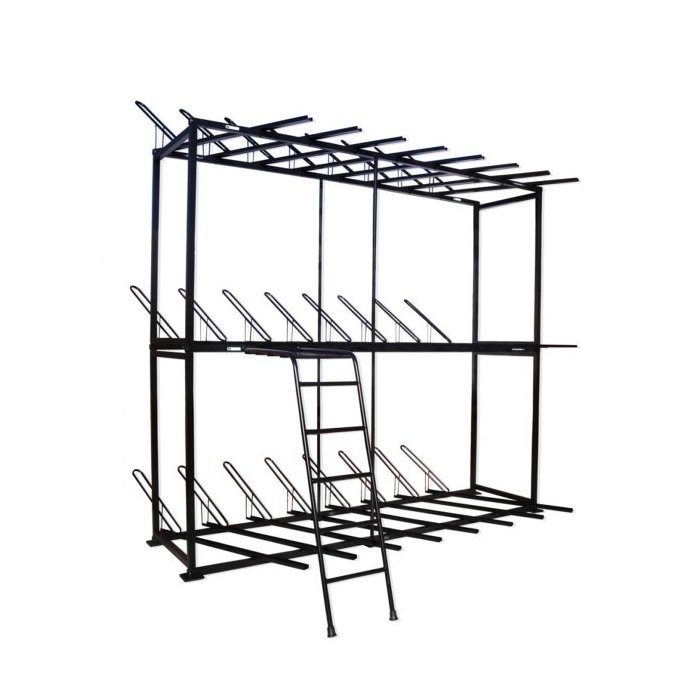 Precisa organizar ou expor várias bicicletas e economizar espaço? A Altmayer apresenta o Bicicletário AL-126. Com ele você poderá distribuir até 24 bicicletas suspensas por canaletas em até 3 andares. Indicado para espaços com no mínimo 4 metros de altura, esse bicicletário Possui 3 metros de comprimento e 2,77 metros de altura. Para facilitar a colocação e retirada dos equipamentos no 3º andar, este modelo conta também com uma escada com uma pequena plataforma.