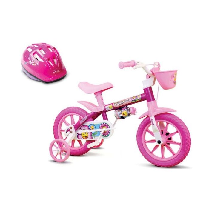 Bicicletinha Infantil Menina Aro 12 Flower Nathor + Capacete