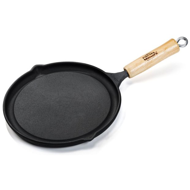 O cabo de madeira oferece manuseio seguro, enquanto o ferro fundido garante durabilidade incomparável e alta eficiência térmica.