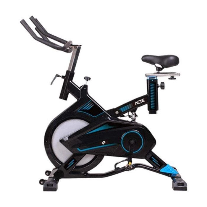 A Bike para Spining ACTE PRO é indicada para uso residencial e em condomínios, é ideal para melhorar o condicionamento físico e a resistência muscular. Ela possui um sistema que simula com perfeição diferentes situações de treino, suporta até 120 kg, possui Roda Livre de 13Kg e é confortável com diversas regulagens de assento e guidão para melhor adequação aos usuários. Acompanha um ciclo computador que mede, varredura, tempo, velocidade atual, distancia da viagem, calorias, distancia total, funciona a base de 02 baterias AA. Seu sistema de transmissão é por correia. Assento confortável, anatômico e com regulagem. seus pedais acompanham firma pé. o produto pesa aproximadamente 37kg, e possui rodas para fácil deslocamento de local. Designer moderno, para combinar com seu estilo.