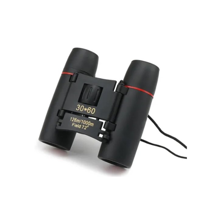 e ótimo alcance em suas observações, aliado à discrição e facilidade de transportar. Graças as suas lentes especiais, este mini binóculo proporciona um grande poder de alcance. Ideal para observações da natureza, caça, acampamento, pescaria, shows, teatro, etc.Informações Técnicas: Ampliação: 30*60 Campo: 7,2 ° 126 m/1000 M Tamanho dobrado: aprox. 9*6*4 cm (3,5*2,4 * 1.6in) Desdobrado tamanho: 9*10,5*4 cm (3,5*4,1 * 1.6in)