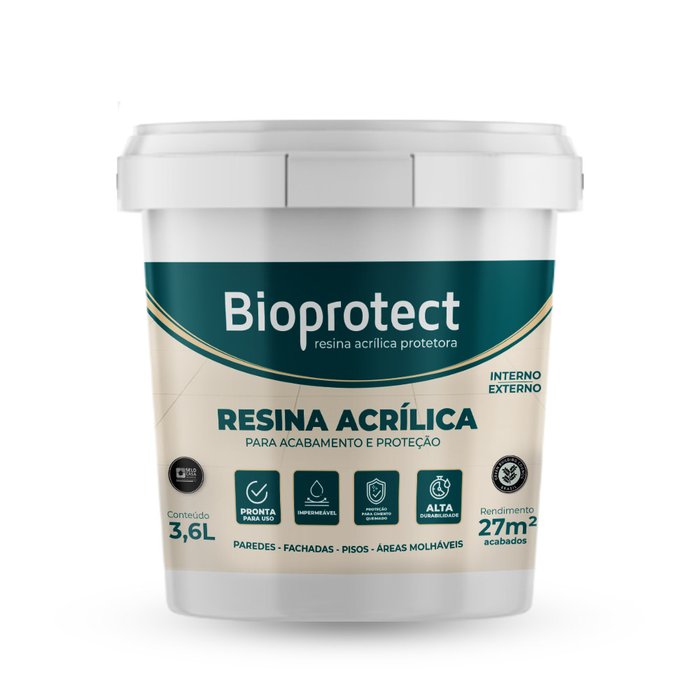 A Bioprotect Resina Acrílica Protetora é uma resina acrílica impermeável, com acabamento e proteção à base d’água, menos agressivos às pessoas e ao meio ambiente, o que a torna a primeira resina ecológica do Brasil. Apresenta alta performance e pode ser aplicada em diversos tipos de superfícies.