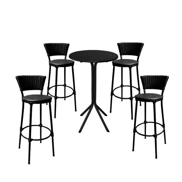 Bistrô Alto Preto e 4 Banquetas Preta em Junco