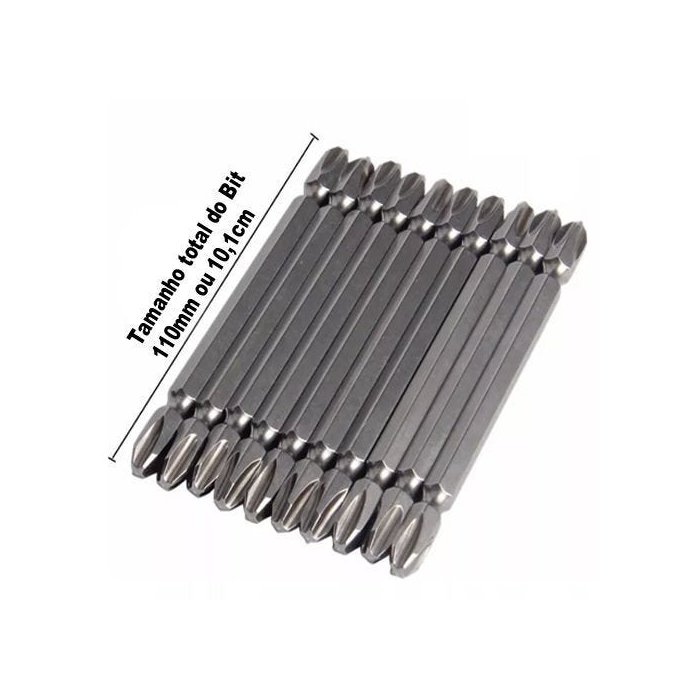Bits Bico Ponteira Ph2 Imantada Longa 110mm Parafuso Philips - 10 Peças