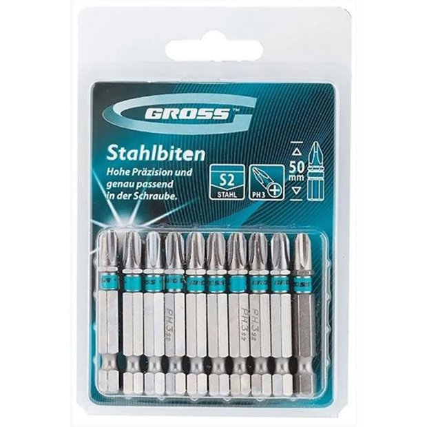 Bits Ph2 1/4 50mm Aço S2 10 Peças Gross 1133555