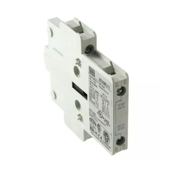 O BCXML-11 Bloco de Contato Auxiliar Lateral 1NA+1NF WEG, possui contatos auxiliares 1NA e 1NF, conforme a norma EM 50005 e EM 50012. Esse modelo de Bloco de Contato é aplicável em contatores da linha CWM9...300 e CAWM4.