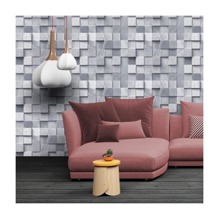 Blocos 3D cinza - Papel de Parede - 1,50m
