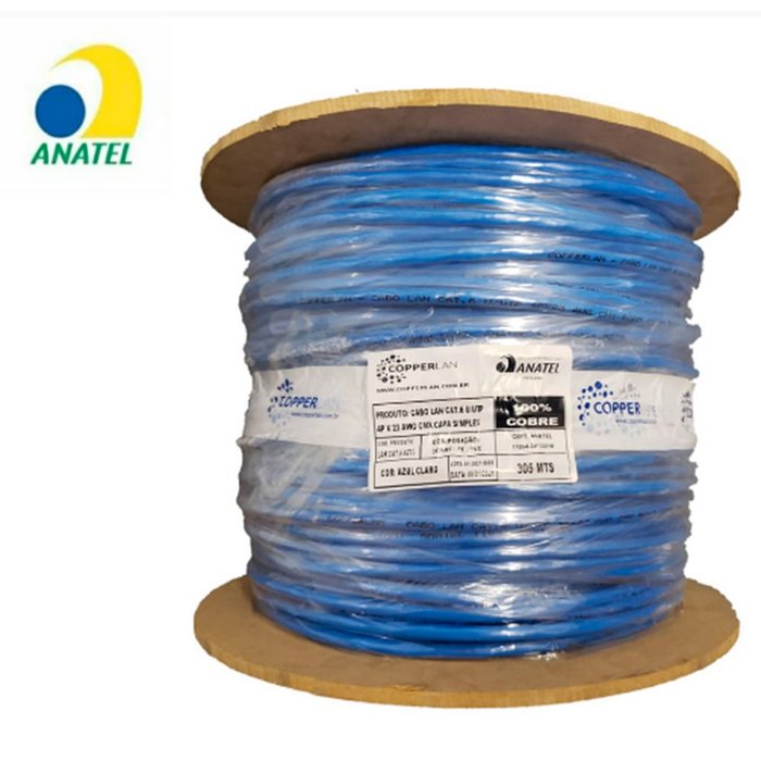 Bobina Cabo De Rede Copperlan/Copperlink Cat 6E Azul Claro 305m