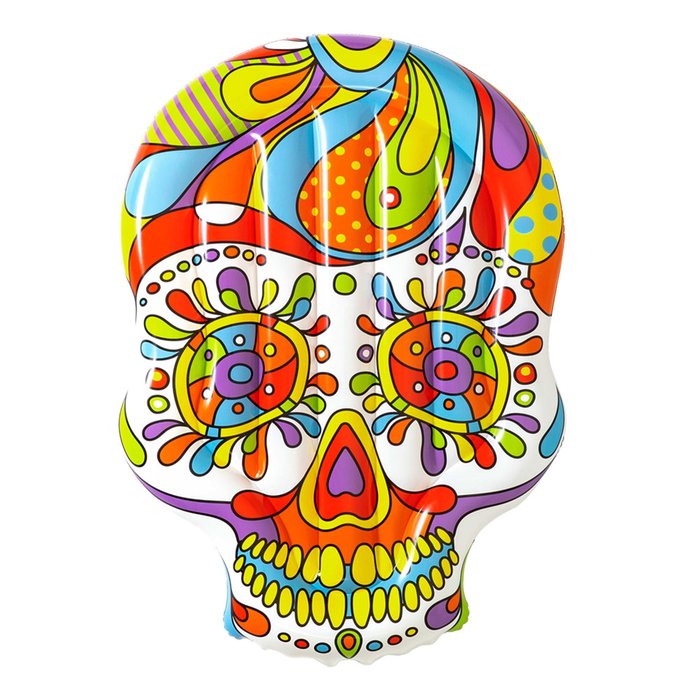 A boia "Ilha Caveira Festa" da Bestway é um modelo inflável para piscina, mar e rio. De medidas extra dimensionadas, possui 1,93m x 1,41m! Além de ser diferenciada, traz total conforto para que os usuários desfrutem de muitas horas de lazer! Em formato de caveira, com estampa multicolorida, conta com válvulas de segurança e é facilmente inflada. Seu material é do tipo vinil altamente resistente. Suporta até 90kg. Vem com um adesivo de reparo incluso. Utilizar somente sob a supervisão de um adulto. - Material: PVC - Medidas: 1,93m x 1,41m - Peso: 1,9kg - Modelo: Caveira Mexicana - Marca: Bestway
