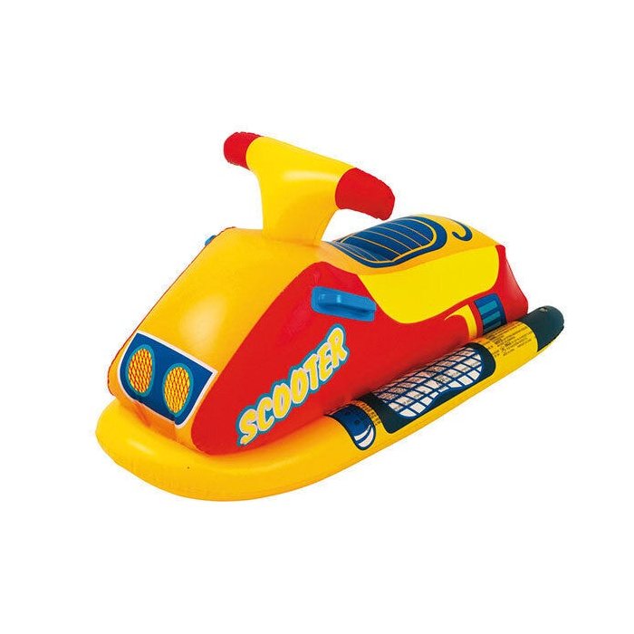 A Boia Inflável é feita de material resistente, atóxico e lavável. Com estampa moderna em formato de scooter. Modelos sortidos.