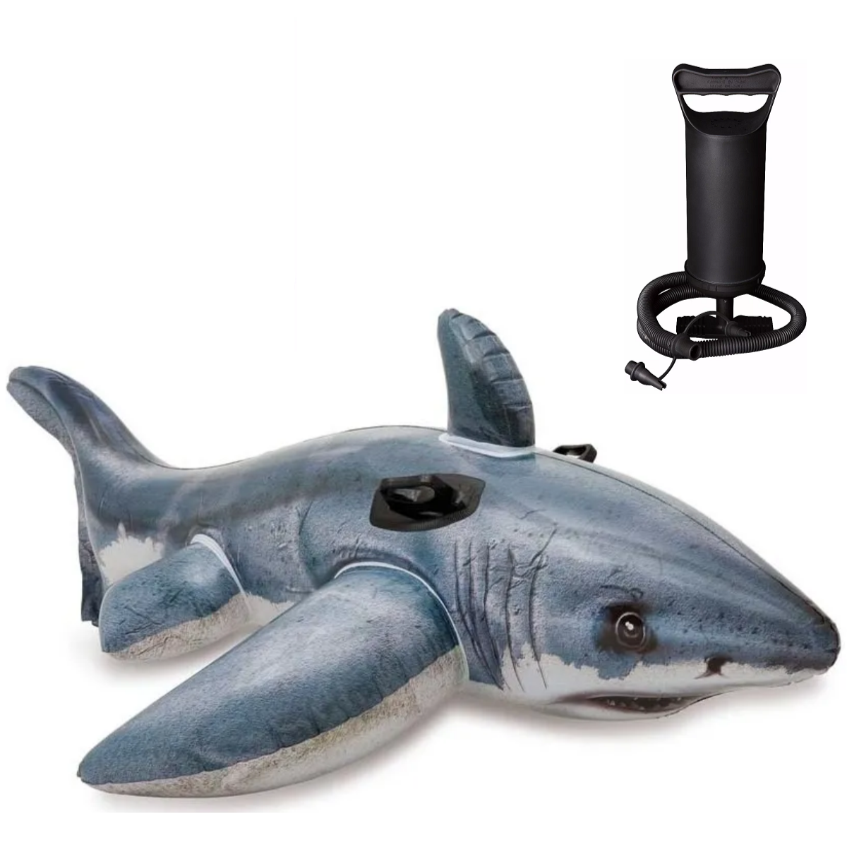 Bóia Inflável Tubarão Realistic Intex para Piscina 173x107cm Cor:cinza