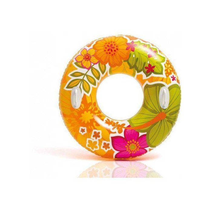 Boia redonda inflável para Piscina. Modelo Circular grande transparente estampa flores 97cm Intex