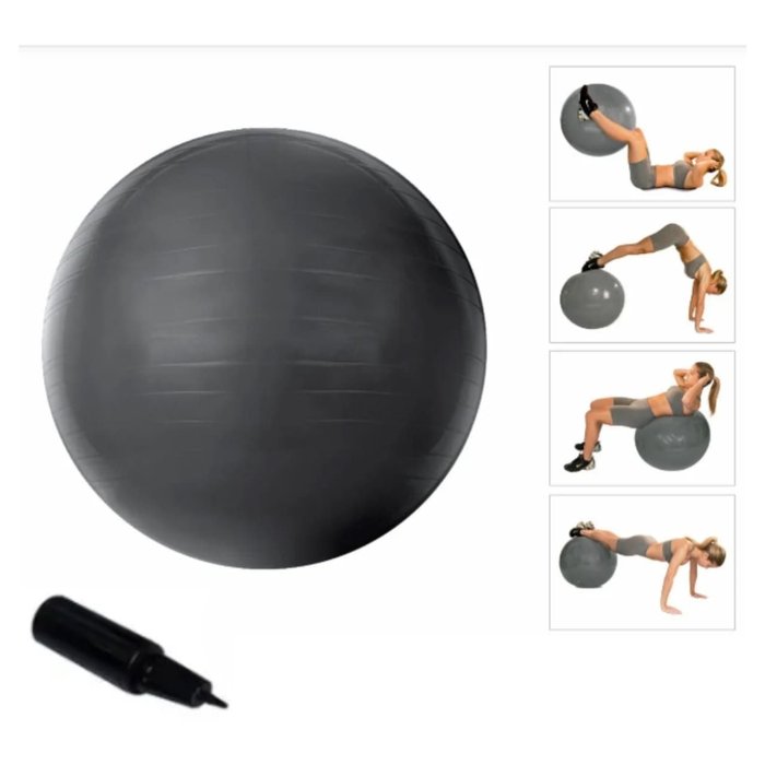Bola de Ginástica Para Pilates Com Bombar de Ar - Cinza Escuro