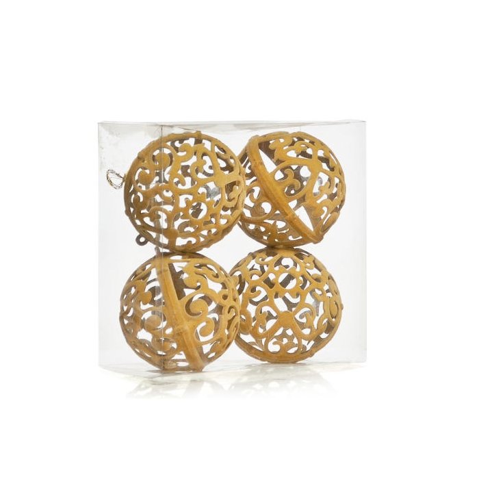 Bola Enfeite Árvore Natal Arabesco Vazada 10cm 4Peça Amarela
