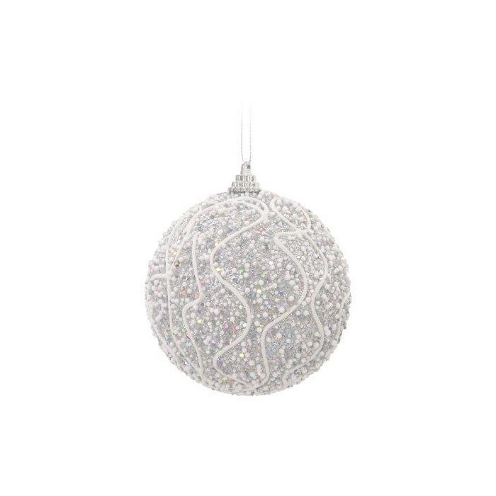 Bola Enfeite Árvore Natal Prata com Ondas 8cm Kit 6 Unidades Prata