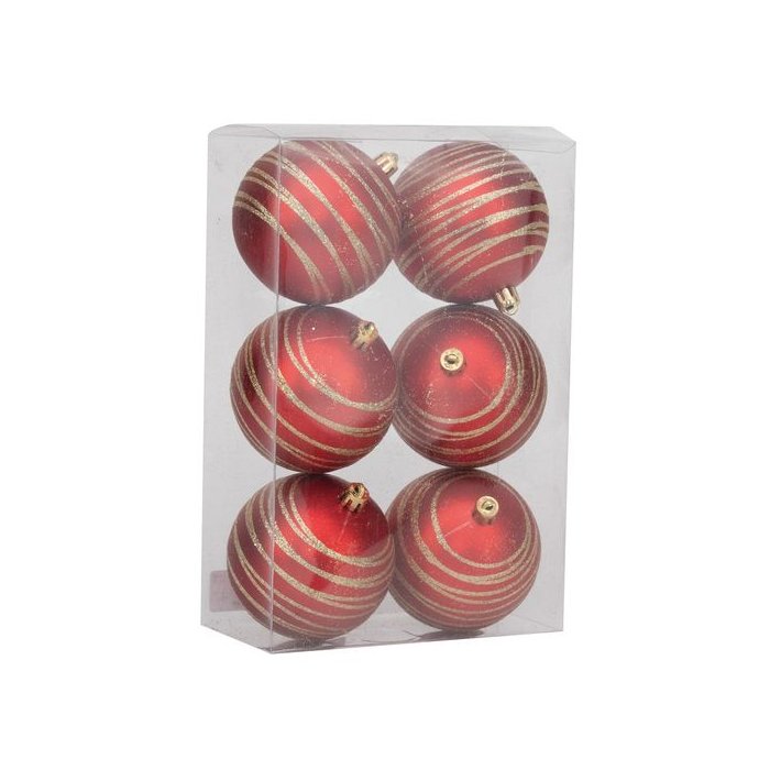 Bola Listra Glitter Vermelho e Dourado 8cm - 6 Un