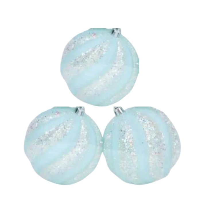 Bola Natalina 8cm C/6 Listra Glitter Azc (trend Raibow) Natal Cromus