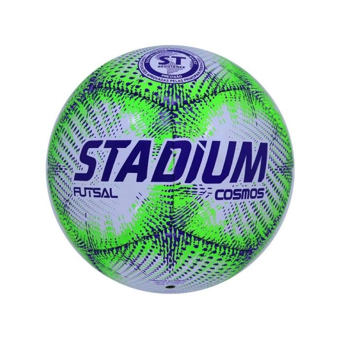 A bola de futsal Cosmos desenvolvida pela Stadium é a opção ideal para seus jogos rotineiros em quadra. É confeccionada com doze gomos de PVC costurados, que melhoram a sua resistência. O seu design é composto pelas cores branca, verde florescente e azul, que melhoram a sua visibilidade e o torna fácil de acompanhar.