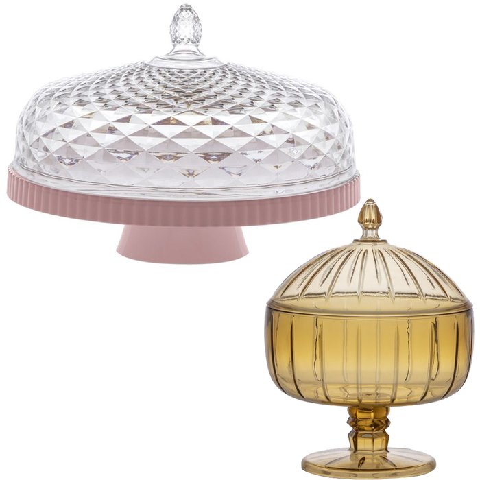 Boleira Acrílica Luxxor Rosa 33cm +Bomboniere Liv 1,3L Amber