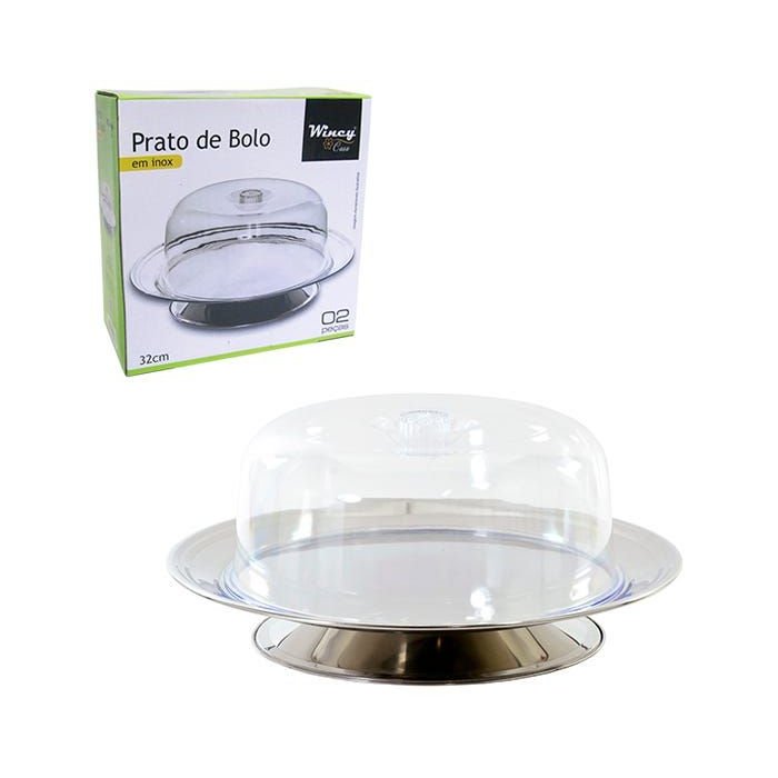 Boleira de Inox com Tampa de Acrilico e Pe 32cm de na Caixa