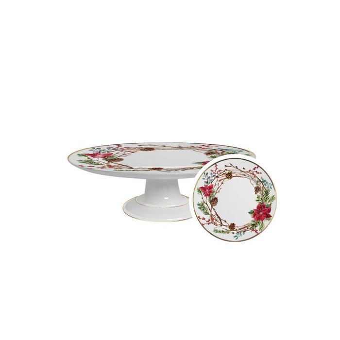 A Boleira Média Guirlandade 29 cm da Alleanza é perfeita para agregar elegância à sua mesa natalina. Feita em cerâmica feldspática branca de alta resistência, é decorada digitalmente, mantendo o charme do Natal. Filetada à mão em dourado, cada peça possui detalhes únicos em cor, brilho e textura. Não pode ser usada no micro-ondas nem na lava-louças, garantindo que seu acabamento artesanal seja preservado. Ideal para servir bolos com estilo e sofisticação em ocasiões especiais.