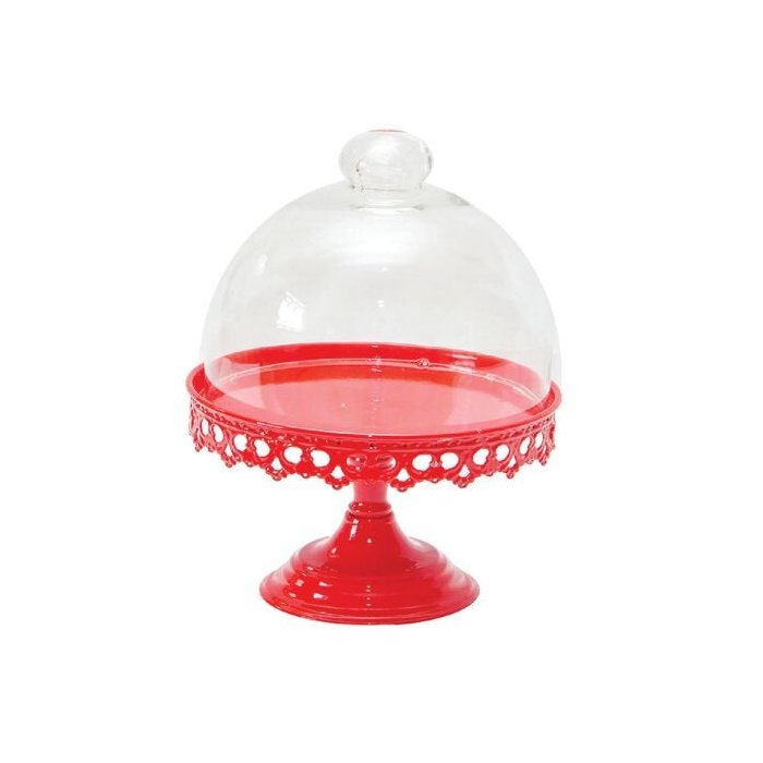 Boleira Metal Vermelho Com Pé E Cúpula De Vidro 16 Cm Ø