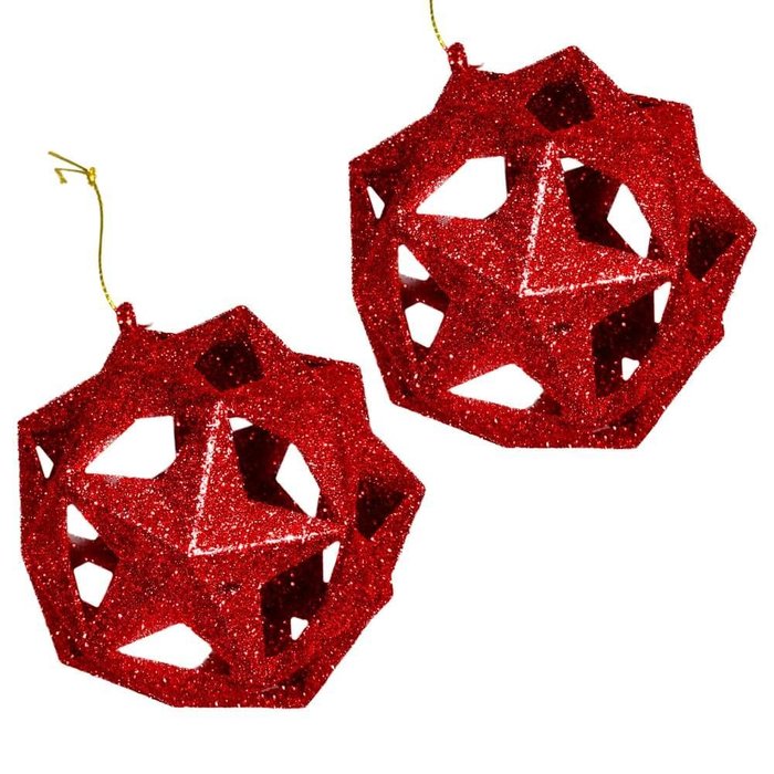 Conjunto de 2 bolas de Natal em Estrela Vermelha 8cm - Casambiente