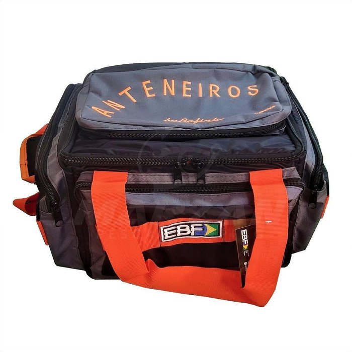 Lançamento EBF Pesca 2023.. Bolsa Anteneiros da linha signature by rafinha minhoca. Com 03 bolsos externos, porta documentos e compartimentos internos amplo espaço para sua tralha, carregue com segurança e conforto.