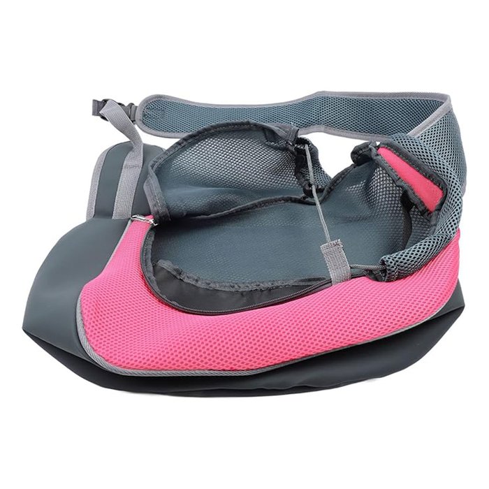 Fecho lateral de facil acesso, com ziper para acomadar facilmente o seu pet, fechamento superior com elastico, tecido de malha respiravel e bolsa na lateral para colocar pequenos itens.