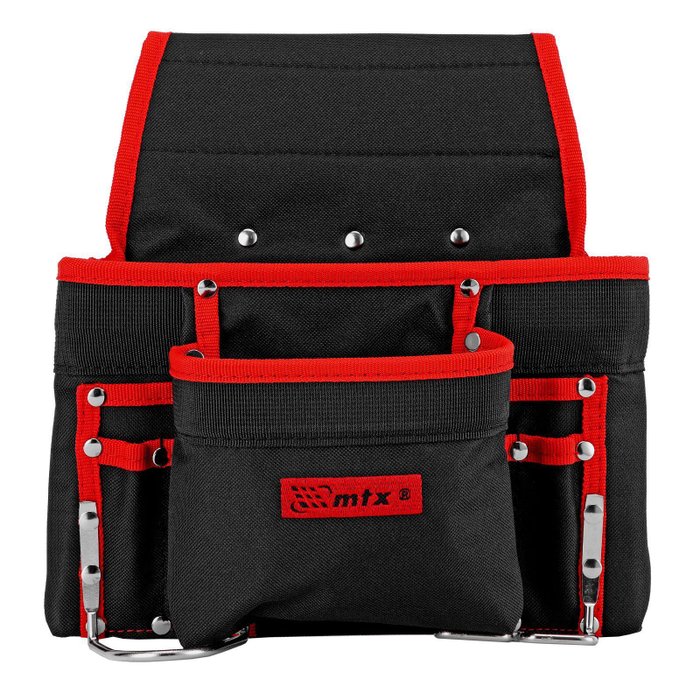 Bolsa Cinto Porta Ferramentas C/ 8 Bolsos e Suportes Martelo e Alicate Mtx Vermelho e Preto