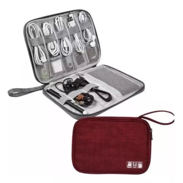 Bolsa Estojo Organizador de Cabos Acessórios Carregadores e Etc Vinho