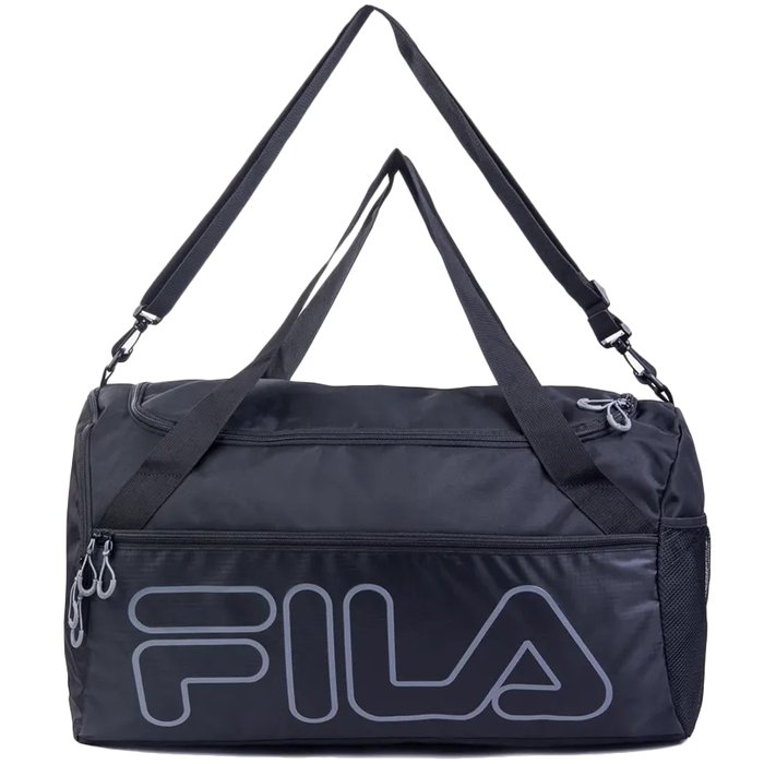 Prática, segura e espaçosa, a Bolsa Unissex Fila Practical Preto é construída em tecido poliéster, com leve brilho, e tecido ripstop no bolso frontal.O compartimento principal possui abertura em "D" e fechamento em zíper. Possui bolsos internos em tecido Mesh para melhor organização. A alça de ombro removível e as alças de mão oferecem um fácil transporte.Ela conta também com amplo bolso frontal, bolso lateral para sapatos e bolso lateral em tecido Mesh. Os puxadores e o forro são personalizados com o logo Fila Letter. Possui maxi logo Fila Outline no bolso frontal.