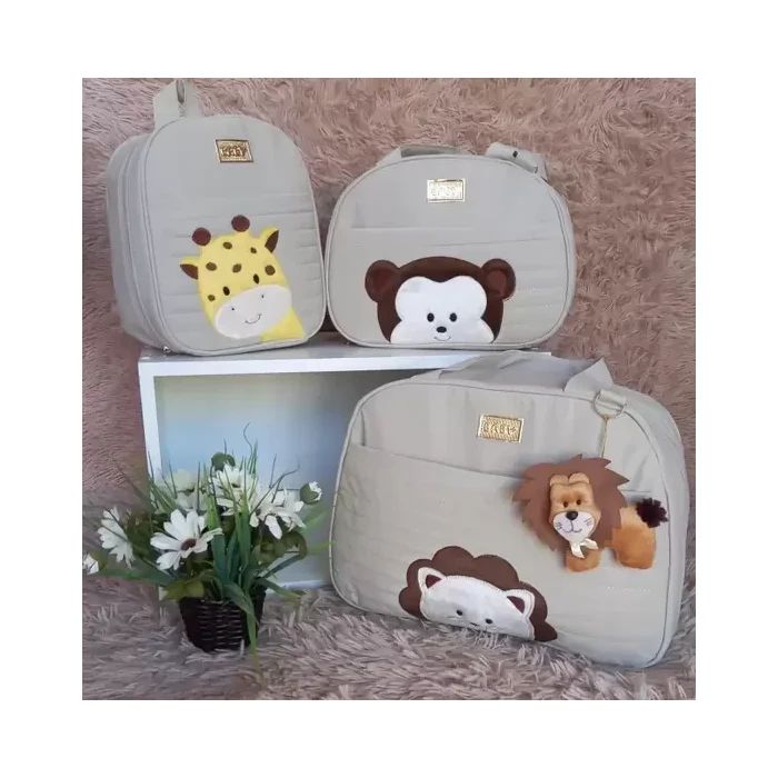 Bolsa maternidade bebê kit 3 peças Safari Bege impermeável