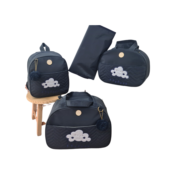 Bolsa maternidade bebê kit 4 peças Nuvem Preta impermeável