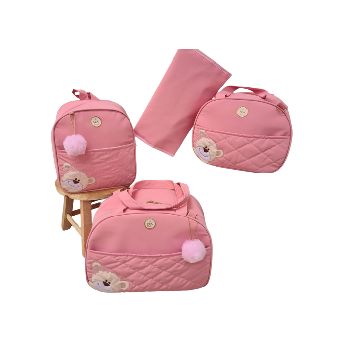 Bolsa maternidade bebê kit 4 peças Urso Rosa impermeável