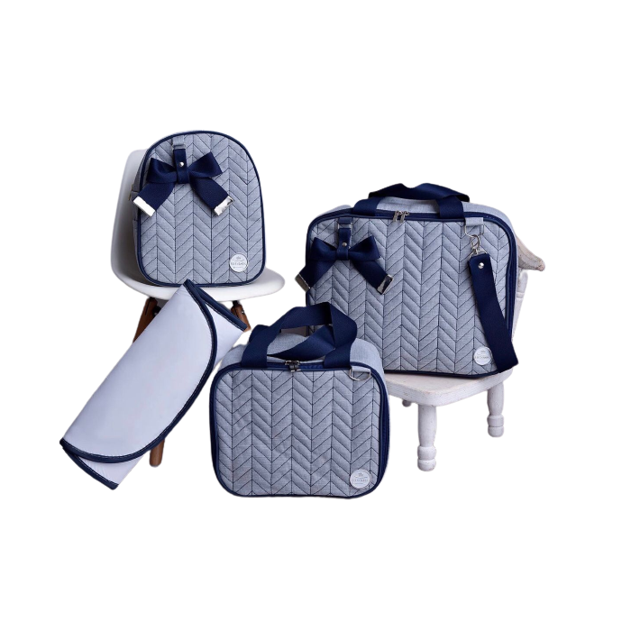Bolsa maternidade bebê kit 4peças laço Azul luxo impermeável