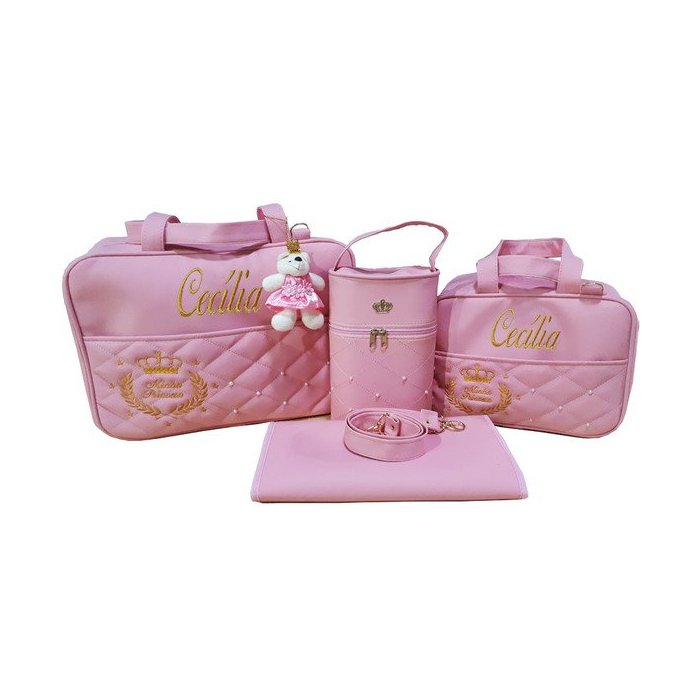 Confeccionadas em Corino não descascaForro interno impermeável:A parte interna é toda forrada com material plastificado térmico lavável de boa qualidade.as bolsas são todas durinhas e feita sob medida para as mamãe,O KIT COMPÕE 4 PEÇAS* Medidas da Bolsa Grande: 42 cm de Largura x 16 cm de Profundidade x 32 cm de Altura* Medidas da Bolsa Média: 32 cm de Largura x 15 cm de Profundidade x 22 cm de Altura* Porta Mamadeira duplo* Trocador 52cm x 32cm* pingente de Urso.* Alça de mão dupla e alça de Ombro (Removível)Fácil de LimparProduto com Ótima QualidadeFeitas com dedicação e cuidado para o seu bebêfabricado no Brasil.