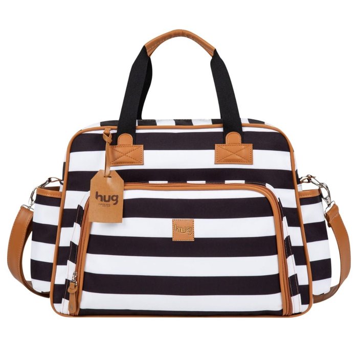 Bolsa Maternidade Londres Grande Listrada - Hug Preto e Branco