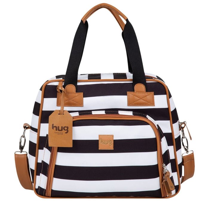 Bolsa Maternidade Londres Média Listrado - Hug Preto e Branco