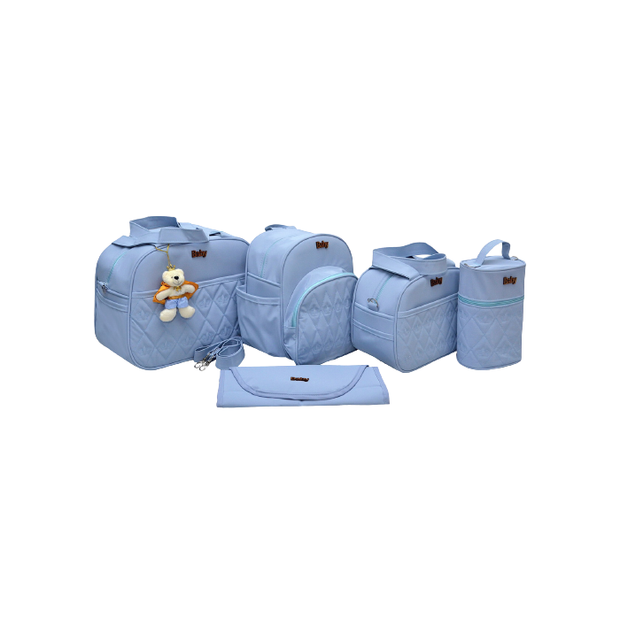 Bolsa maternidade luxo kit 5 peças azul bebê impermeável