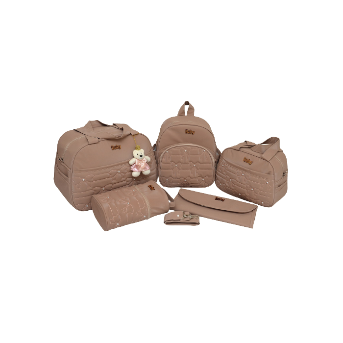 Bolsa maternidade luxo kit 5 Rosê impermeável chaveiro urso