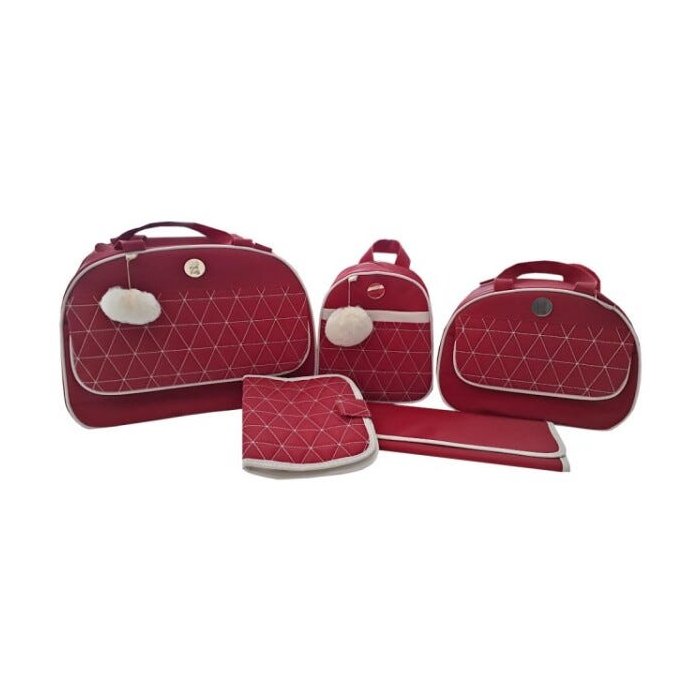 Bolsa Maternidade Unissex Vermelho Vinho Cartão Vacina 5 peças L