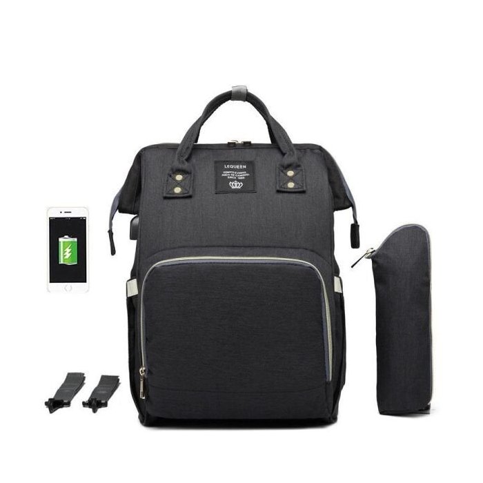Bolsa/Mochila Maternidade Lequeen Original Com USB e Impermeável - unico - Preto