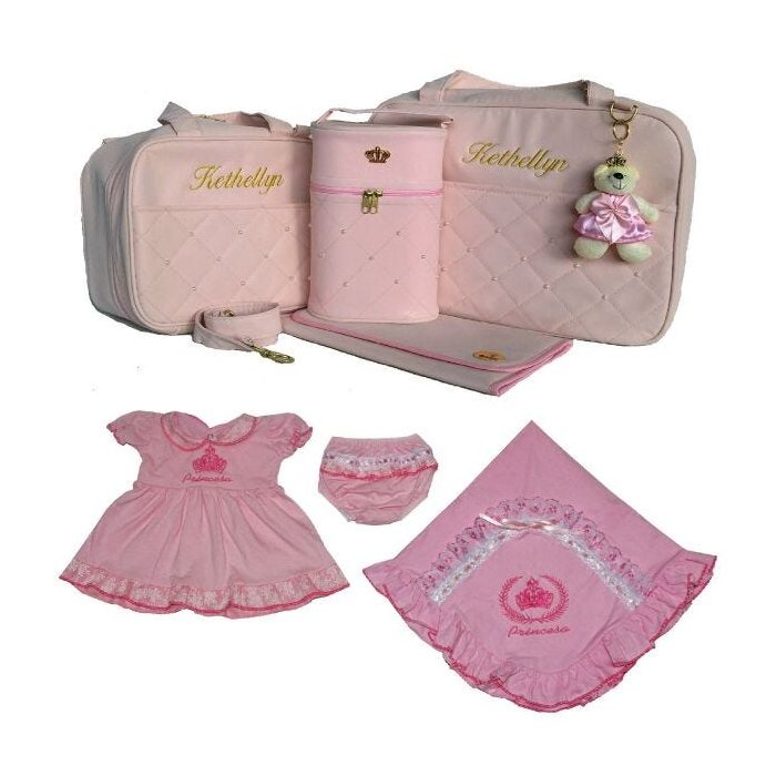 PERSONALIZAMOS COM O NOME DO SEU BEBE. Neste lindo kit de saída de maternidade bolsas + roupinha , colocamos o nome do seu bebe nas duas bolsas. Conjunto de Mala Maternidade contendo um chaveiro, uma Mala grande com zíper duplo, um bolso frontal, um par de alças de mão e uma alça de ombro que serve para ambas as malas, forro interno térmico. Mala pequena com zíper, um bolso frontal, um par de alças de mão e suportes para alça de ombro, forro interno térmico. Porta mamadeira duplo e um trocador. Material: As Bolsas são feitas com material sintético na parte externa, conhecido em nossa região como FACO, E.V.A. na parte intermediária, dando a elas uma maior resistência e sustentação. E como material interno utilizamos o laminado 0,18, pois o mesmo é impermeável e de fácil limpeza. DIMENSÕES: Mala grande mede 42 cm comprimento x 31 cm altura x 17 cm profundidade Mala média mede 31 cm comprimento x 23 cm altura x 17 cm profundida Porta Mamadeira duplo Trocador 51 cm x 33 cm Chaveiro Urso 13 cm ITENS QUE COMPÕEM O KIT PARA MENINAS: 1 Alça de ombro 1 Vestido 1 Calcinha 1 manta 1 Mala grande 1 Mala média 1 Porta Mamadeira de isopor duplo 1 Trocador 1 Chaveiro urso ITENS QUE COMPÕEM O KIT PARA MENINOS: 1 Alça de ombro 1 Macacão 1 manta 1 Mala grande 1 Mala média 1 Porta Mamadeira de isopor duplo 1 Trocador 1 Chaveiro urso Assim que fizer a compra deixe uma mensagem para o vendedor informando o nome do bebe para bordar nas bolsas. ATENÇÃO: Por ser um produto 100% artesanal poderá haver alteração em acessórios ou estampas, mais sempre respeitando o tema. BOAS COMPRAS.
