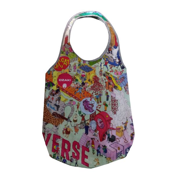Bolsa estilo desenho, com tamanho de 78 cm, útil em feiras, praias, compras e passeios.