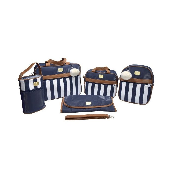 Bolsa Saída Maternidade Mala Bebê Menina/Menino com Mochila Kit 5 Peças Azul-marinho