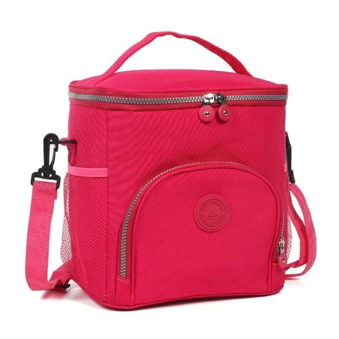 Bolsa Térmica de Mão Quadrado com Alça Ajustavel Marmita Lancheira Trabalho Impermeavel Pink