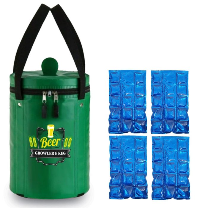 Bolsa Térmica para Barril Chopp 5l + 4 Cartelas Gelo Gel verde