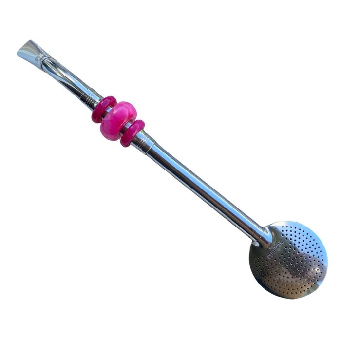 Bomba Chimarrão Purinox Pedra Tripla Natural em Aço Inox 304 Rosa