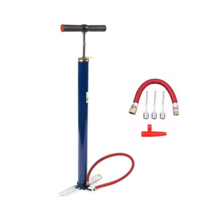 Acompanha mangueira e bico para encher pneu de bicicleta, bola e infláveis.